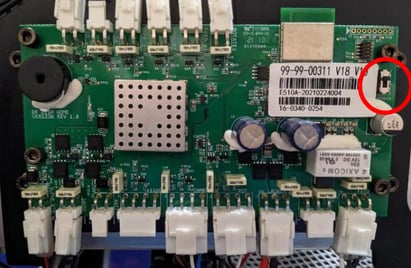 - Power Board Setting: This step is very important not to miss. If you are going from the gray Grosschop motor to the black MotionTech motor, there is a switch that needs to be flipped on the Power Board.The correct positioning is as follows. Up for the black MotionTech motor and down for the gray Grosschop motor.